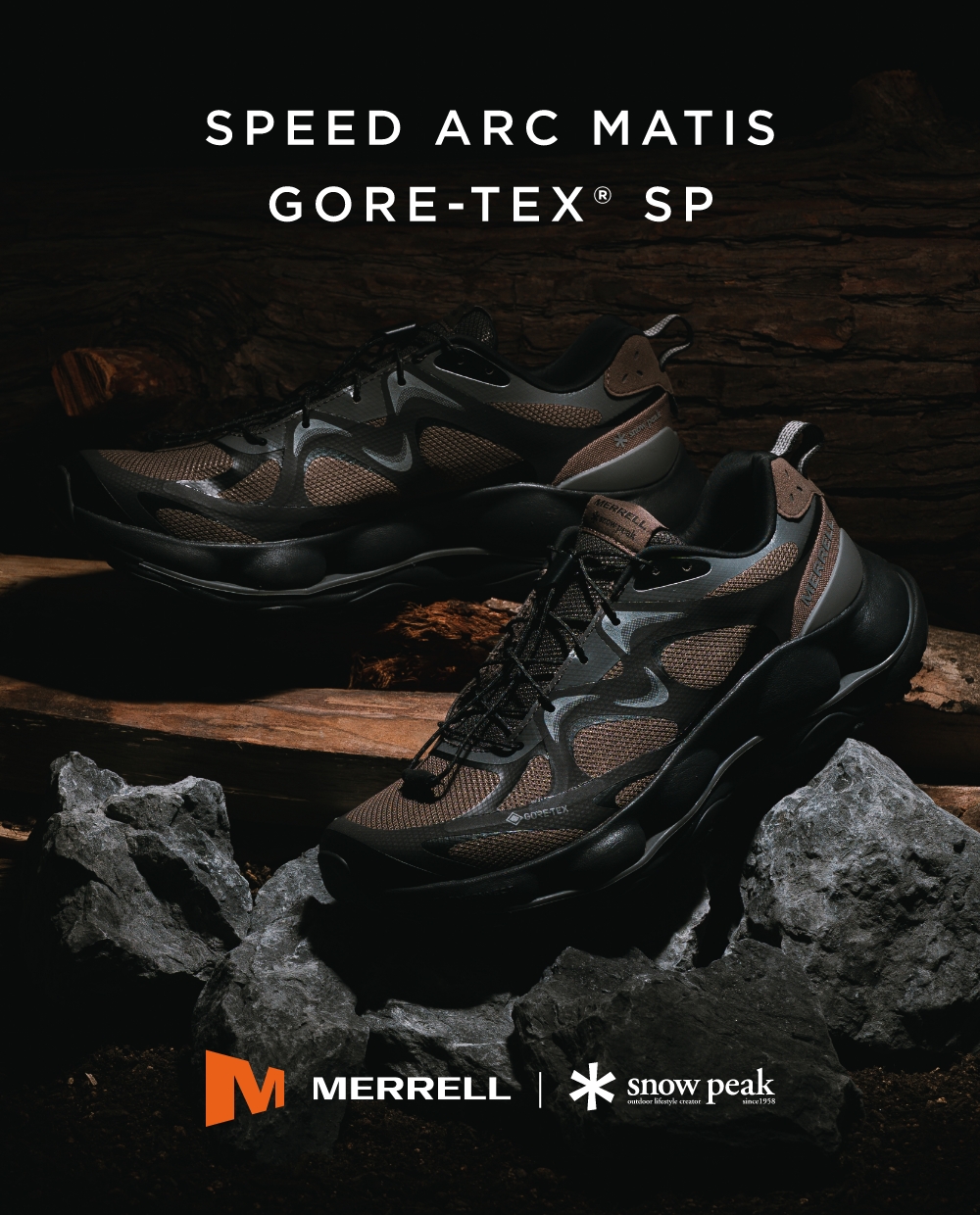 第3弾となる本モデルは、アウトドアでのマルチユースはもちろん、都市での着用も想定したパフォーマンス性とデザイン性を高次元で両立したアイテムです。MERRELLの先進的なブランドテクノロジーと高機能マテリアルを採用し、優れた機能性を実現しています。『アウトドアシューズの未来』を感じさせる次世代ハイキングシューズ「SPEED ARC MATIS GORE-TEX®」を、スノーピークオリジナルカラーで展開します。