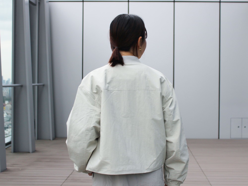 フロントのマルチポケットがポイント、ウィメンズボンバージャケット。
