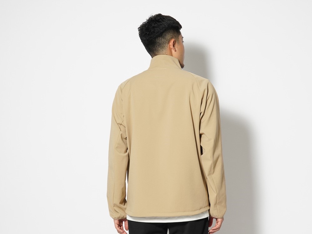 表にペットボトルからのリサイクル糸を、裏側にナノ炭素材料のグラフェン糸を使用した、二重織り素材の「Active Comfort」シリーズ。高密度に織り込むことで、しっかりとした肉感の、肌触り柔らかな素材に仕上がっています。ポリエステル100%のストレッチ性で、生地の脆化がなく、シワになリにくいのが特徴です。こちらはほどよく薄手で、ミドラーとしてもアウターとしても機能するマルチなスタンドカラージャケット。軽快なレングスで取り入れやすく、合わせるボトムのシルエットも選びません。袖口はプッシュアップできるバインダー仕様で、裾は調整可能なアジャスター付き。いずれもしっかりフィットして、外部からの風の侵入を防ぎます。前立てはダブルファスナーで、トップが肌に触れないガード付きです。手入れポケットの上には、セキュリティ面も安心のファスナーポケットを設けています。左裾にさりげなくあしらわれたSnow Peakロゴは、ボディと同色にして自然と馴染ませました。カラーは、ブラック、ネイビー、ベージュのベーシックな3色をラインナップ。ユニセックスで着られる、豊富なサイズ展開です。