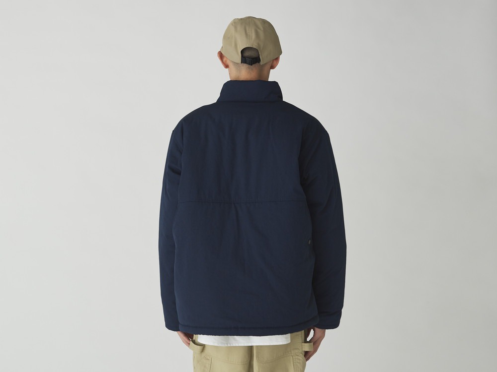 レイヤリングを想定したシルエットとサイズ感の中綿ジャケット。脱ぎ着がしやすく防風性に優れた、ファスナー+ドットボタンのフロント仕様です。袖口は内側リブ仕様、裾は両脇のサイズ調整仕様により、内側への外気の侵入を防ぎます。フロントにはハンドウォーマー付きの大容量ポケットを、バックにも大容量のゲームポケットを完備。